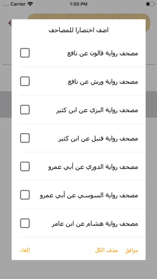 2- إمكانية حذف صفحات أي مصحف تم تحميله على الجهاز.