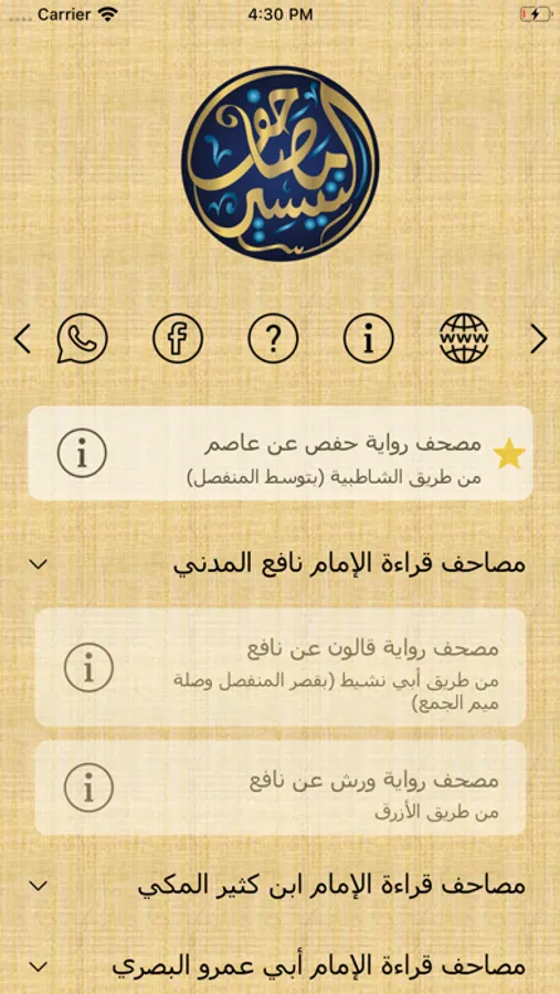 This is a Quranic application that displays the Ten Koran Readings. the so-called Tayseer Mushafs, exclusively of alwa7y.com.