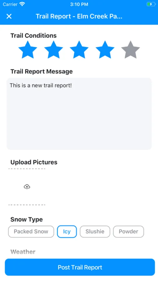 View, edit and create trail reports directly from your phone. We feature the ability to subscribe to trails you frequently ski at and be notified when new trail reports are submitted for that trail.