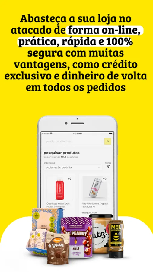 Em um único lugar, você compra on-line tudo o que precisa para a sua loja, sem burocracias. Pelo site ou aplicativo, você compra as marcas mais famosas do mercado em um único pedido, com uma única entrega e um único pagamento.