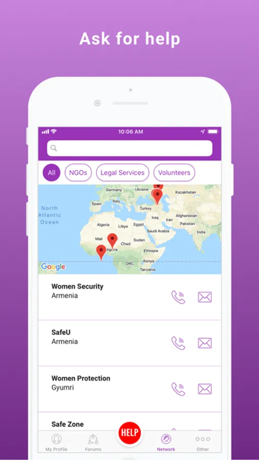 SafeYOU is a safety tool for women. It will alert your emergency contacts when you are in danger, and includes audio recording and geolocation tracking. You will get access to a network of support from different NGOs and service providers. You can also discuss different subjects with professionals and your peers in topical forums.