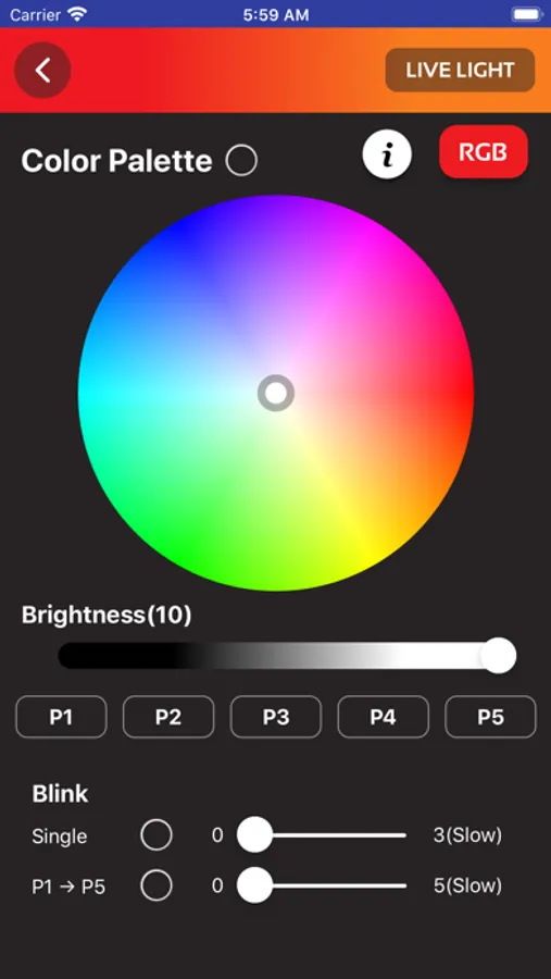 Colors can be changed using the color palette or RGB bars, and you can save and recall your preferred colors.
