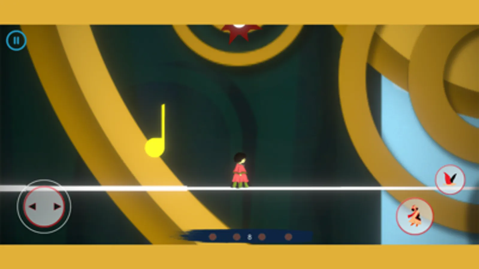 The player has to avoid obstacles and by collecting a music note you open the next world.