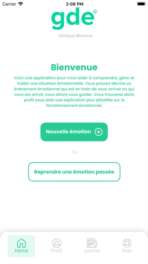 Grace à l'application GDE, élaborée par la Clinique Belmont, vous pouvez comprendre et faire évoluer vos émotions. Vous serez accompagné durant tout le processus et vous pourrez reprendre cela avec votre thérapeute si vous le désirez.. Ne vous sentez plus dépourvu face à vos vagues émotionnelles.