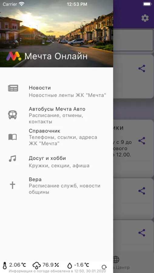 - данные о погоде на основании погодных датчиков в ЖК Мечта