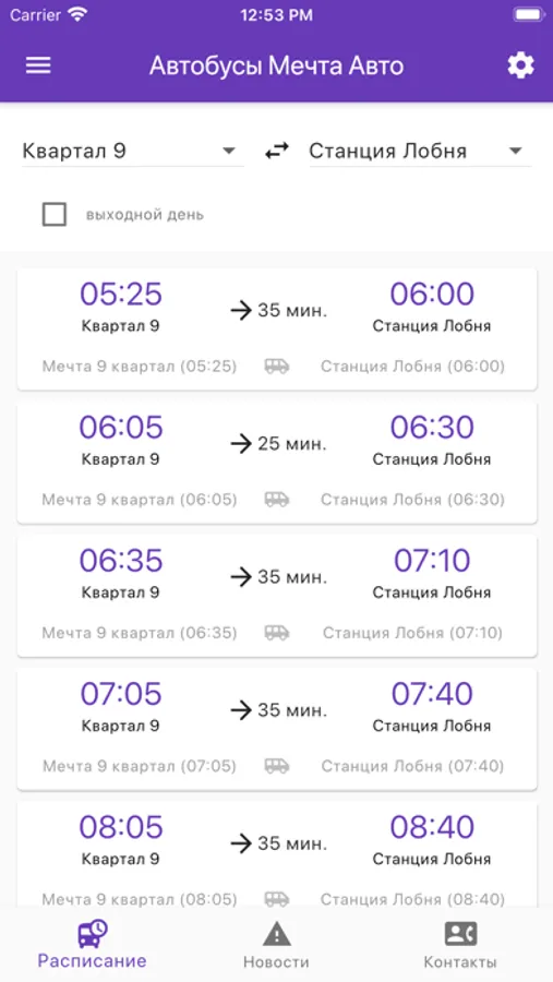 - актуальное расписание автобусов и оперативную информацию об отменах и других изменениях в расписании