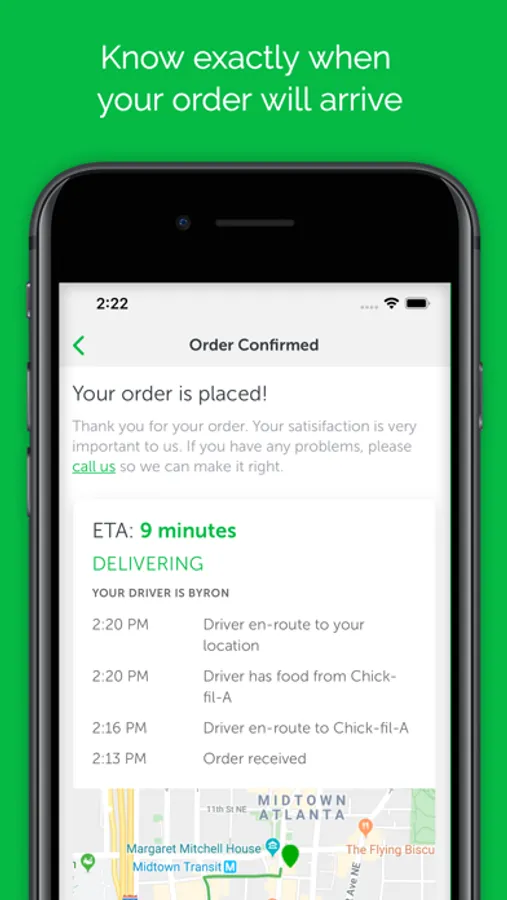 Track your orders through our live tracking system. Real time tracking allows you to stay in the know of when your food will arrive. Our tracker accounts for things like weather and ticket times at restaurants.