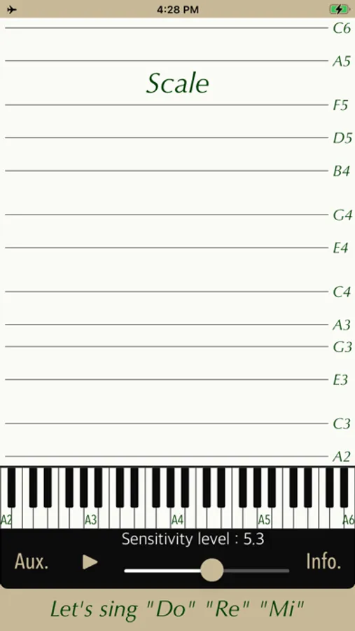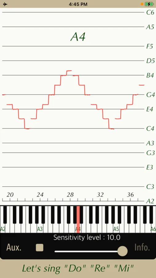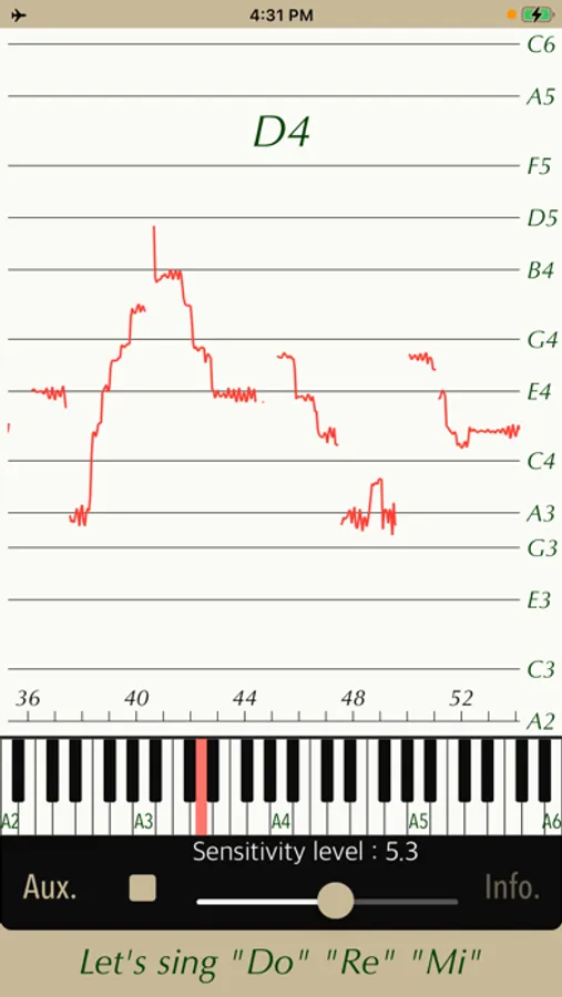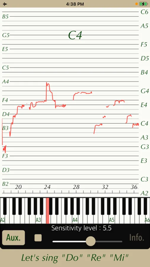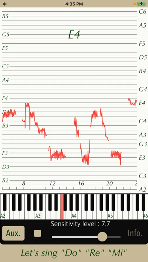 You just sing into the built-in microphone on your iPhone, and it graphs the estimated vocal pitch on the stave.