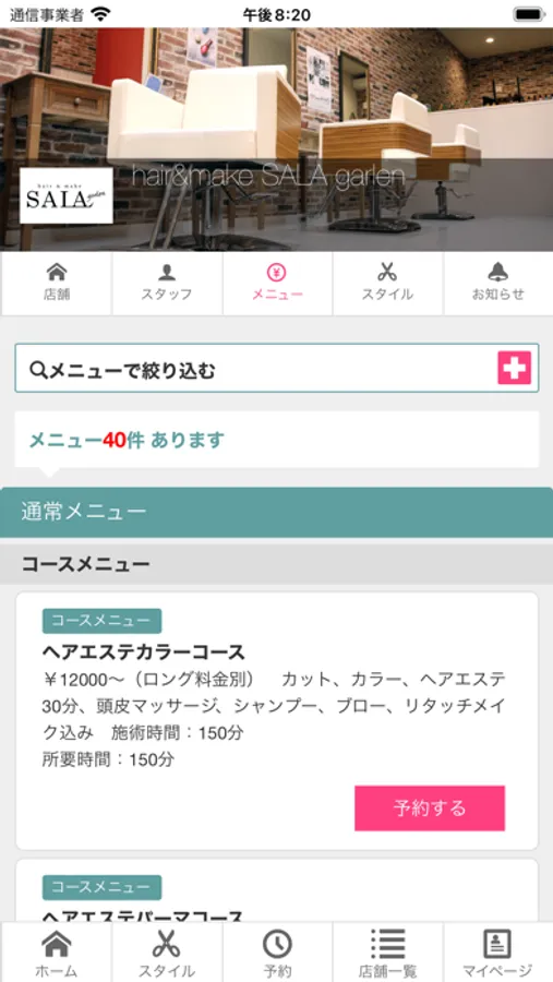 これまでの来店履歴や予約内容、お店からのお知らせをチェック。