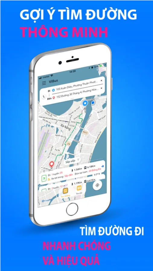 - Chỉ đường thông minh: tìm đường đi nhanh chóng, hiệu quả; hiển thị khoảng cách, thời gian xe buýt tới trạm lên.