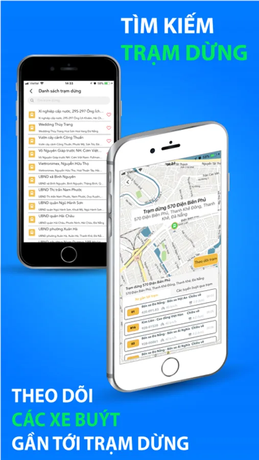 - Hỗ trợ hiển thị xe buýt đang chạy trực tuyến và trạm dừng trong vùng đang tìm kiếm trên bản đồ
