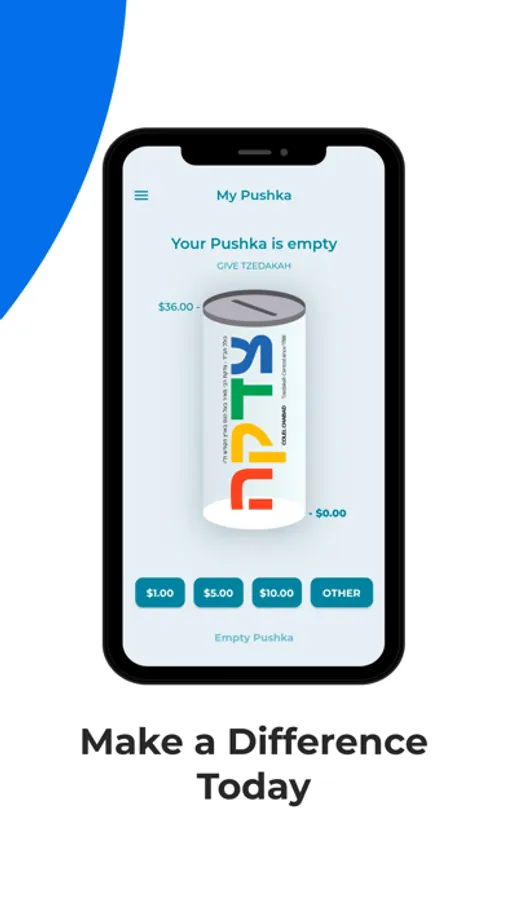 The Colel Chabad Pushka makes daily giving easier and faster by bringing the charity box to the 21st century. No need to find cash, bring your charity box to the shul, or fill out long online forms. Feeling charitable? Want to do a good deed? We’ve got you covered. Make the world a bit brighter with just one tap. Simply select the customizable shortcut amount you wish to give, and watch your Pushka reach its goal, when you're done you can choose to empty it and start over.