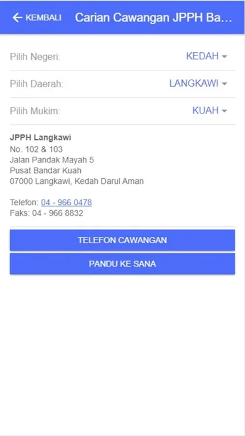 4. Carian Cawangan JPPH Malaysia bagi Urusan Penilaian