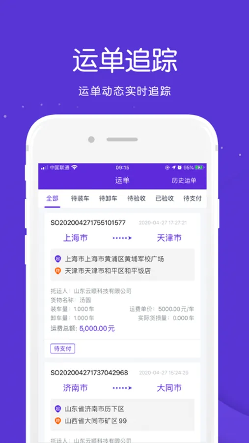 运单追踪,运单详情状态及时更新;