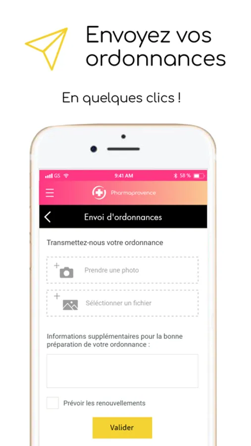 - Envoyer la photo de mon ordonnance pour qu'elle soit prête à mon passage à la pharmacie