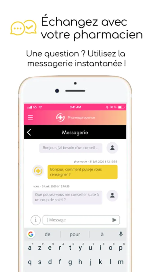 - Contacter mon pharmacien de manière sécurisée avec la messagerie instantanée