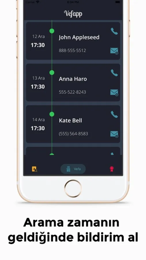 Uzun süredir bir tanıdığınızı aramak isteyip ardından unutuyor musunuz? Hemen Vefapp'ı indirin. Vefapp bir süredir aramak isteyip de arayamadığın tanıdıkların için arama planı oluşturup onları hatırlamanı sağlar.