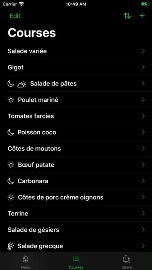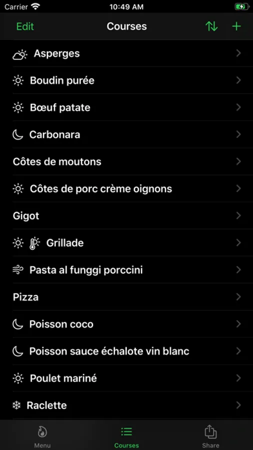 Create courses, specify their season, day time and build weekly menus.