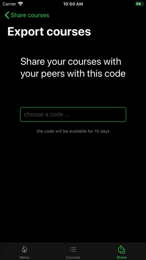 Share your courses with your peers with a code.
