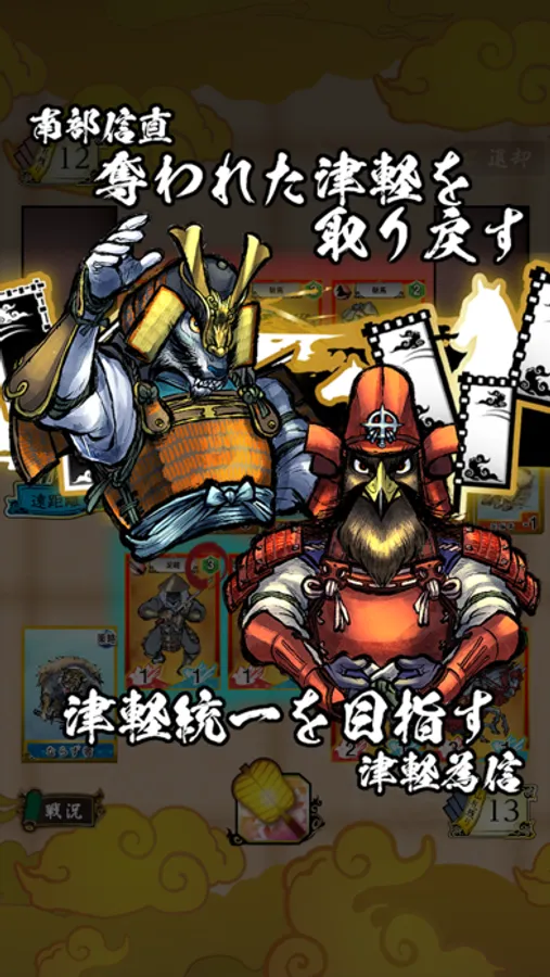 「津軽為信統一記」は戦国時代に本州最北の地(現在の青森県の津軽地方)を舞台に一代で大名へと成りあがった津軽為信の津軽地方統一までを追体験する「ストラテジー&カードバトル合戦」ゲームです。