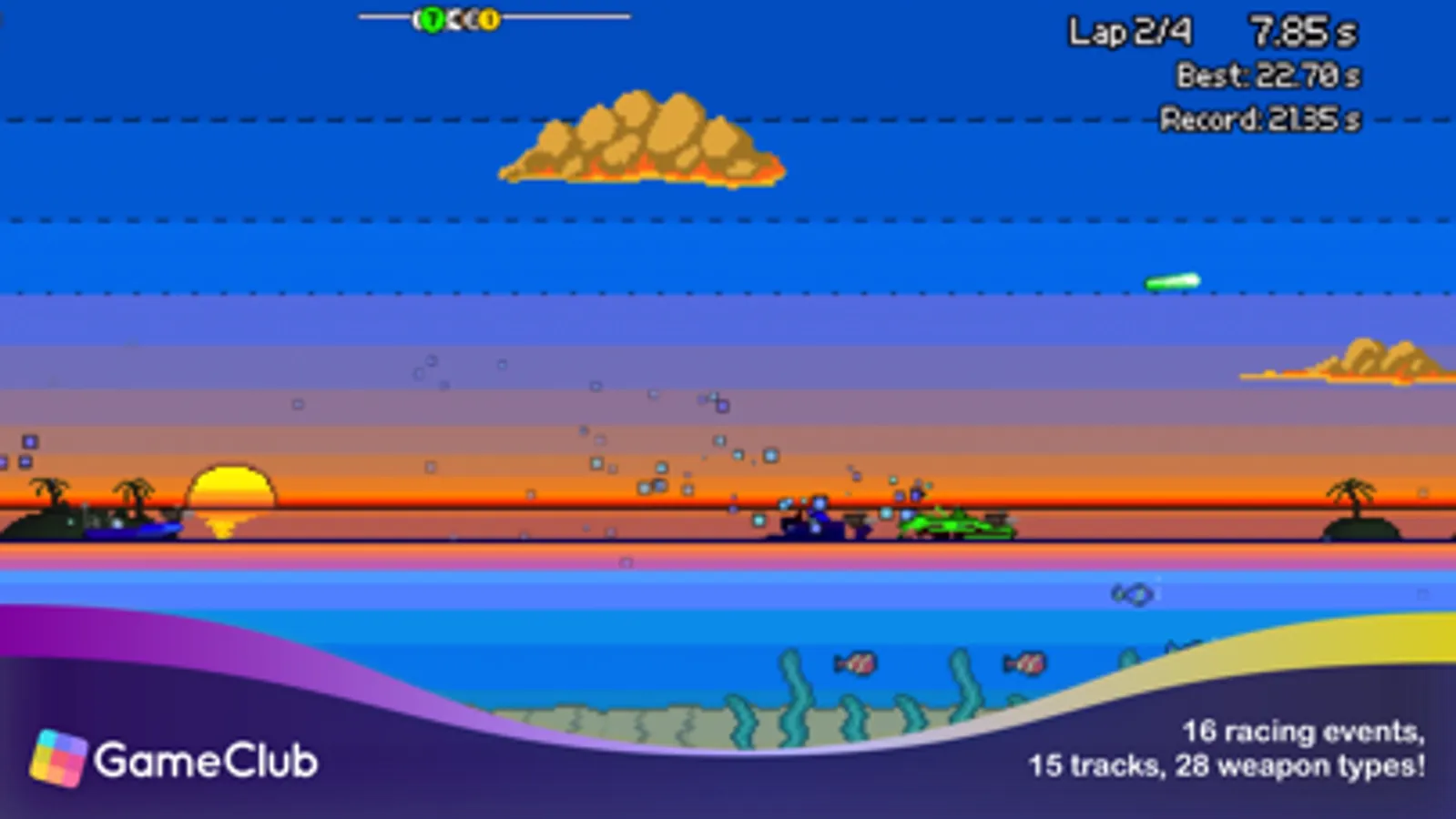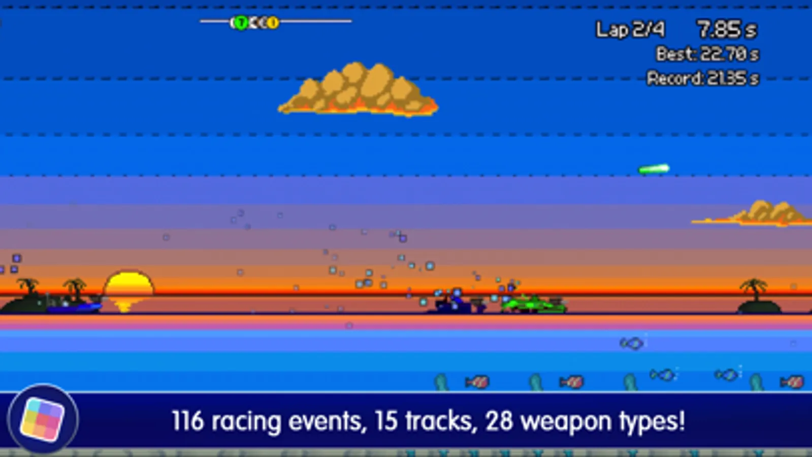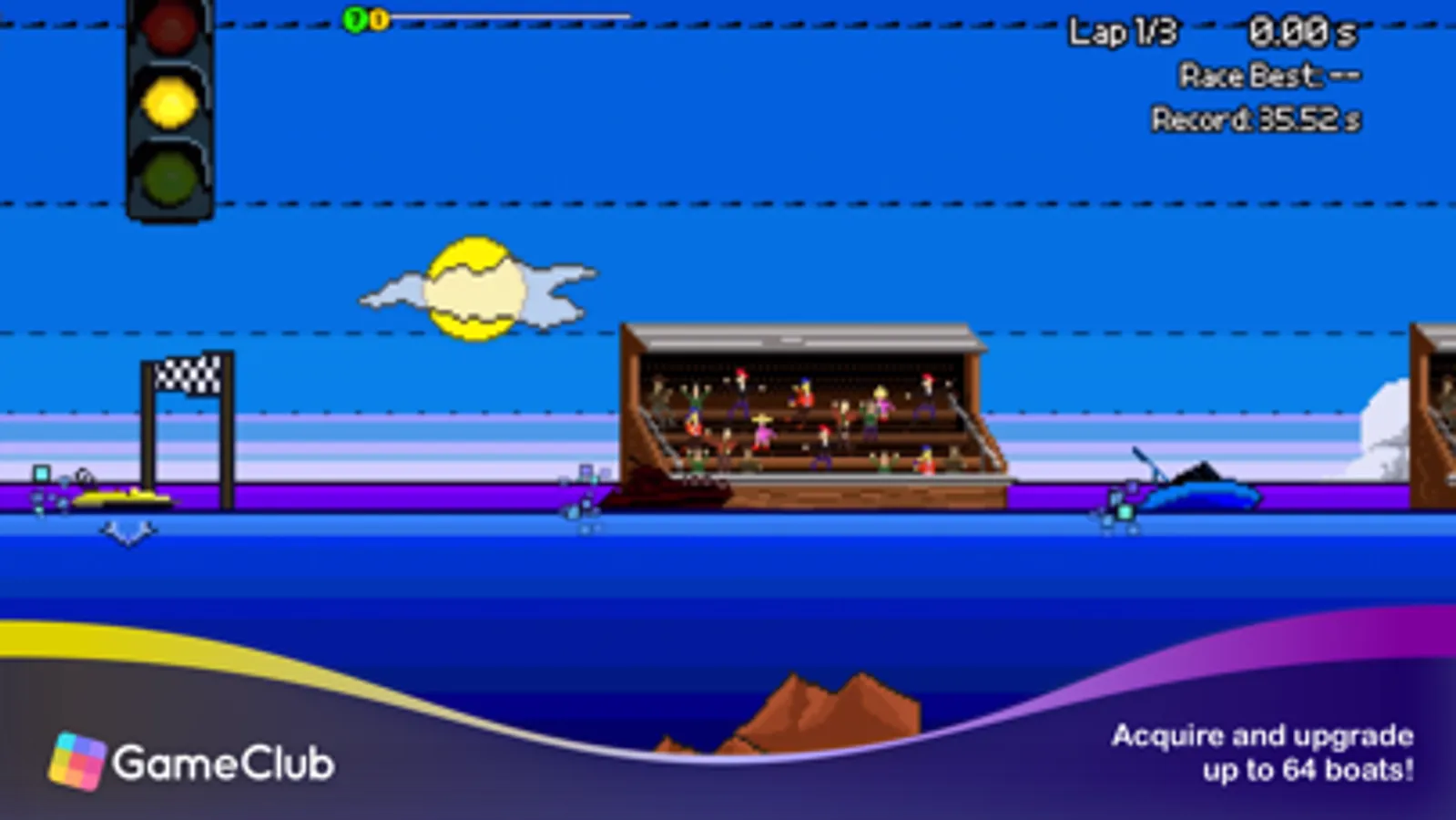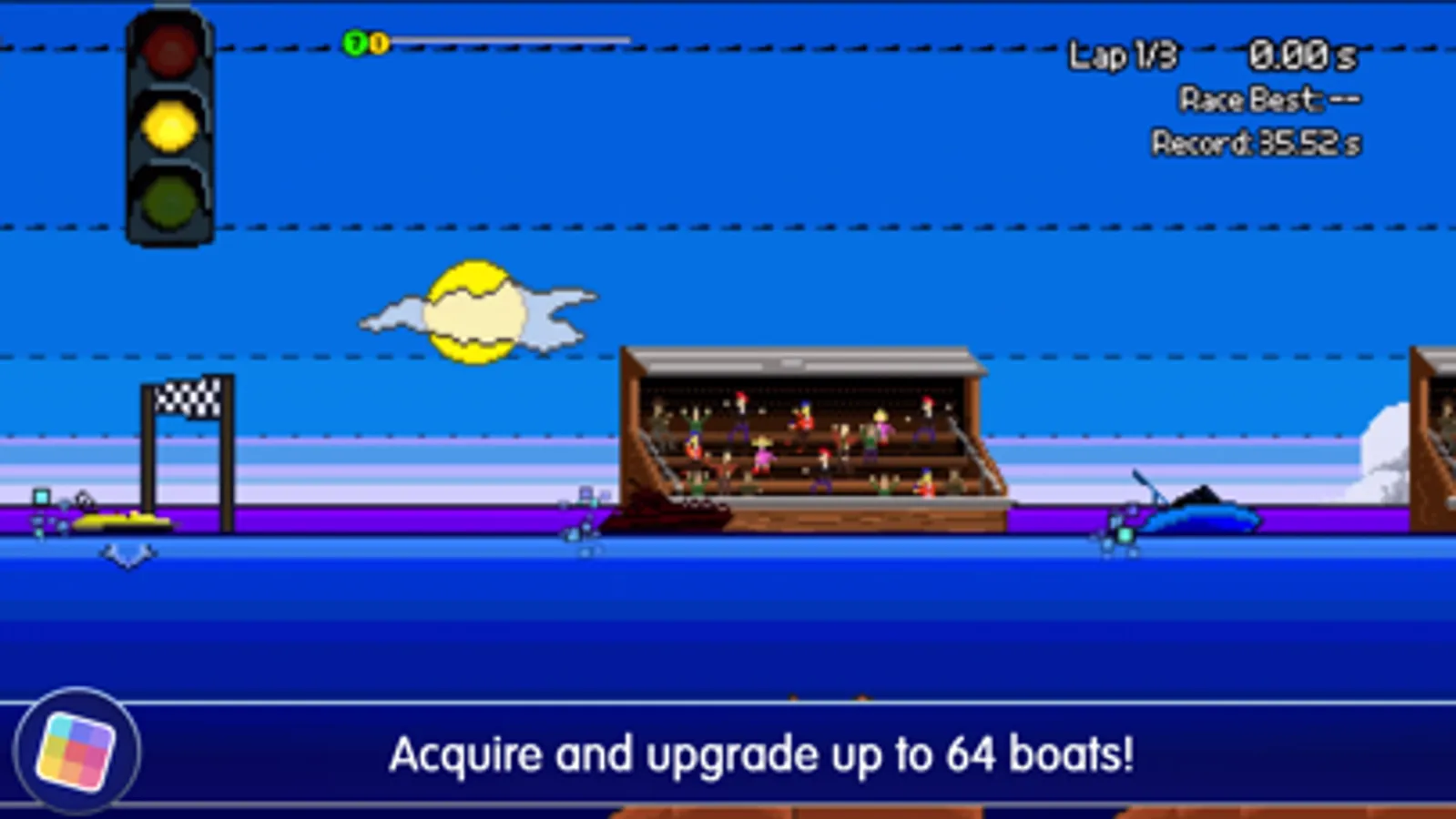 Pixel Boat Rush is the ultimate high-speed race on the high seas. With just enough scraped together for a beginner's license and a basic boat, you'll have to claw your way through the ranks in a quest to be the greatest racer alive. Victory brings in prize money and other spoils that you can use to buy upgrades and new boats that will give you the edge in the next race.