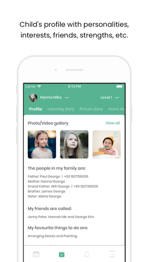 - The profile of your child with his or her personalities, interests, friends, strengths, etc.