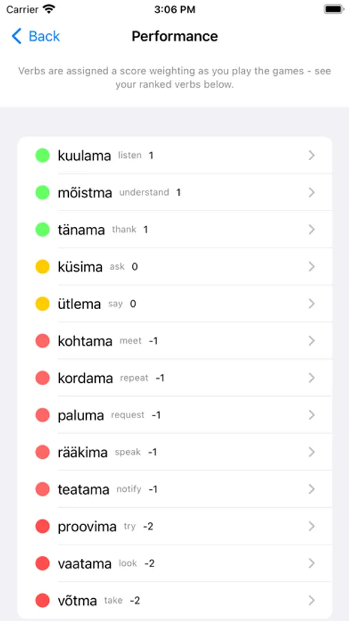 The verbs selected represent some of the most commonly used Estonian words, so Verb Blitz is a great way to increase and practise your core, everyday vocabulary.
