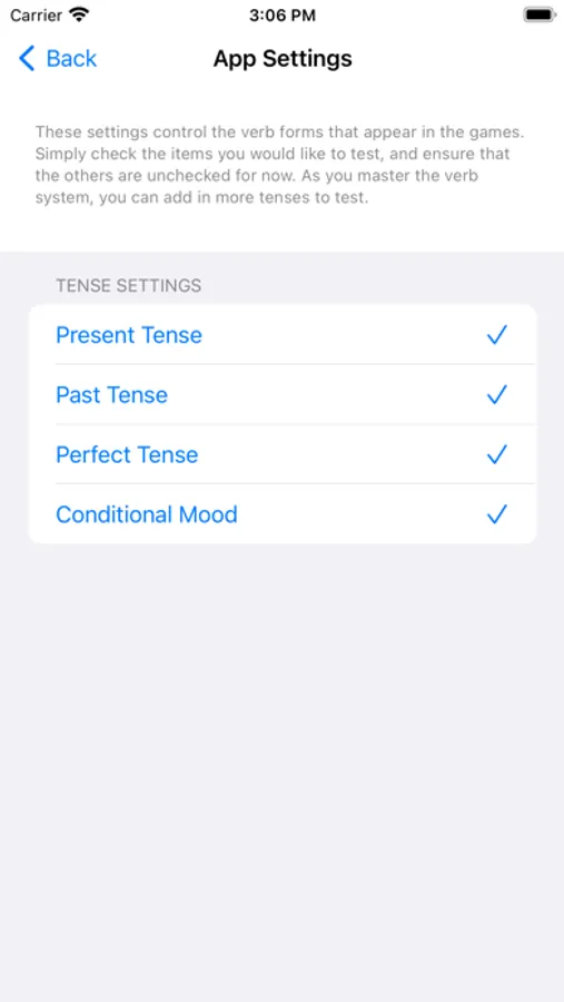 As well as a tap-to-listen verb reference, there is plenty of practice provided with a set of intensive verb drill activities to quiz your conjugation knowledge. Activities include: