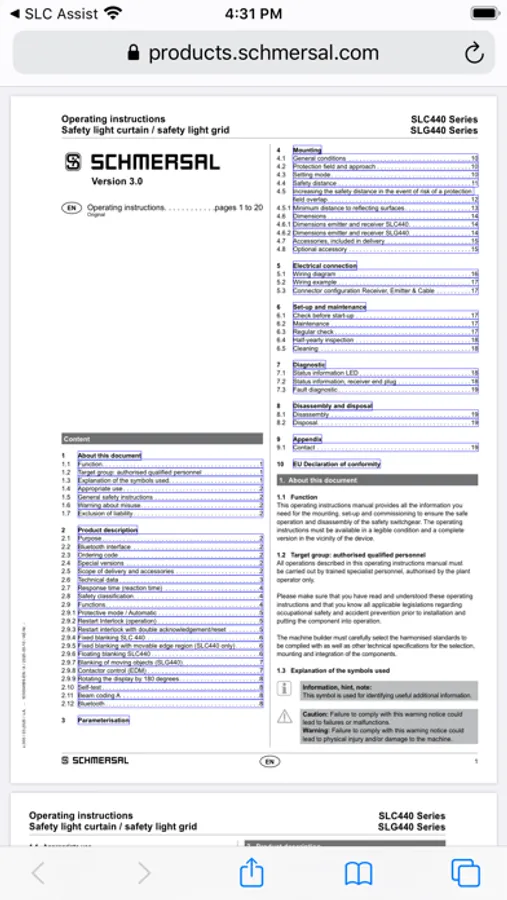 You do not only have all information about your safety light curtain available, SLC Assist is also an important tool for installation, service and documentation.