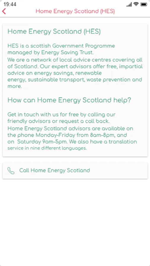 There are four main sections in the app – Money, Housing and Bills, Work and Help Now. Click on the one that seems most important in your situation, and then choose from a list of further options. Choose again and you will find the contact details to get the help you are looking for. If you don’t find what you want, or if you are in the wrong section, use the buttons at the bottom of the screen to take you into a different section.