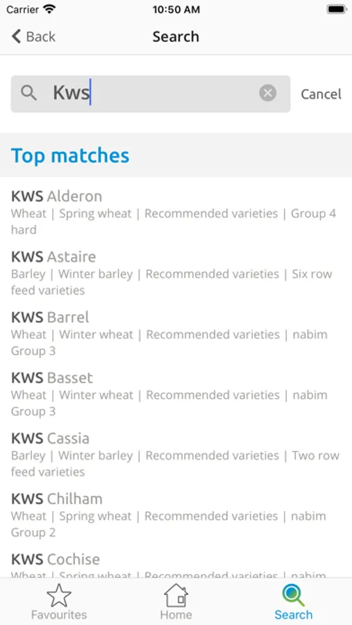 This application provides summary information on Recommended and Candidate varieties for wheat, barley and oats and oilseed rape.