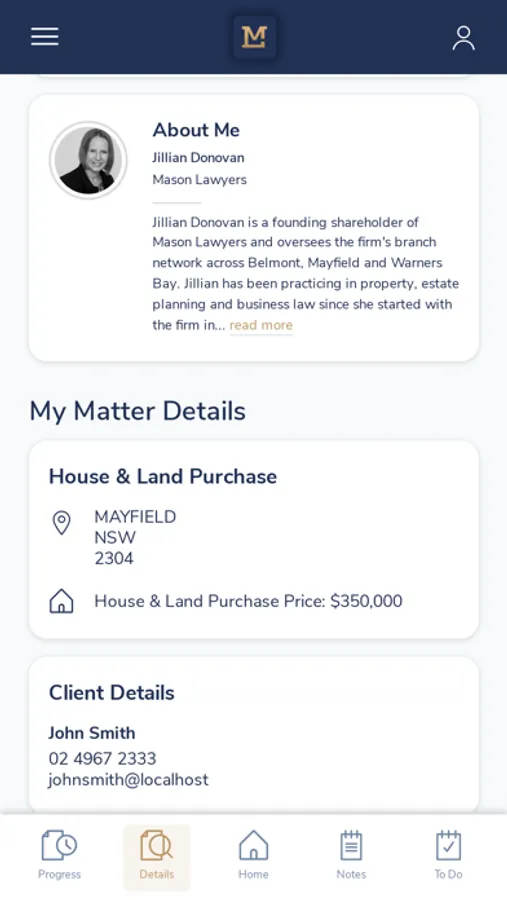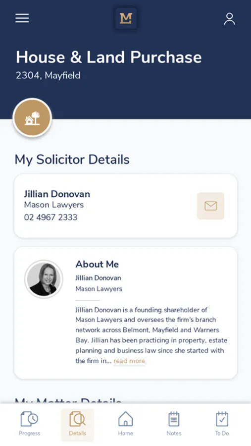 With any legal service, you’ll want visibility over the matter without having to pick up the phone! In a world of mobile devices, we now expect the ability to review progress at a time that is convenient to us. This app has been designed with features that keep you updated by providing live matter information. Whether you simply want to check the quote or if you wish to keep track of progress, this is the app for you. You’ll be able to clearly see each step in the legal matter so you understand the process.