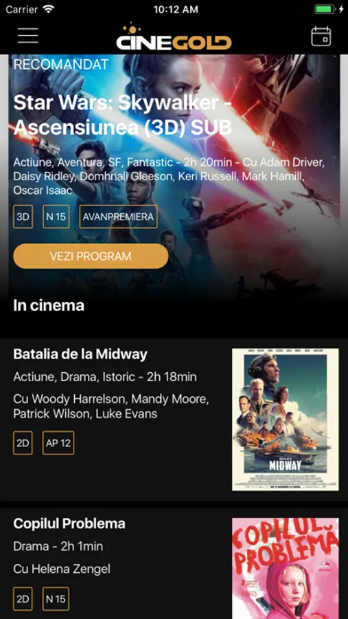 Aplicația CineGold afișează programul filmelor care rulează în cinematograful CineGold din Sibiu și pune la dispoziția utilizatorului funcții de rezervare și achitare bilete sau produse.