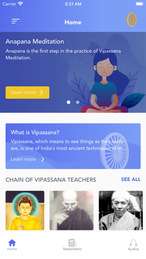 For decades now, the words of Goenkaji have inspired masses to not only get introduced to the technique but also to go deeper in their meditative practice. This app aims to make Vipassana Meditation instructions and media available globally to all so that all benefit from this wonderful technique.