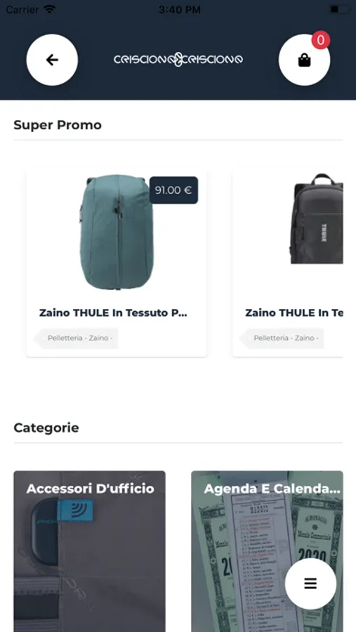 Registrati e acquista con semplicità prodotti di cancelleria, moda e pelletteria dove e quando vuoi con l'app gratuita di Criscione & Criscione.