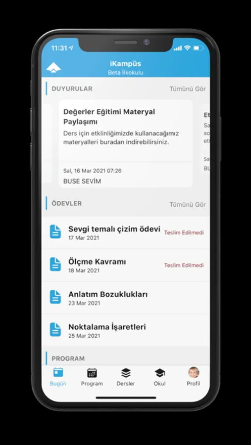 Ödev, Ders Programı, Ders Duyurusu, Sınav Programı, Etüt bilgileri
