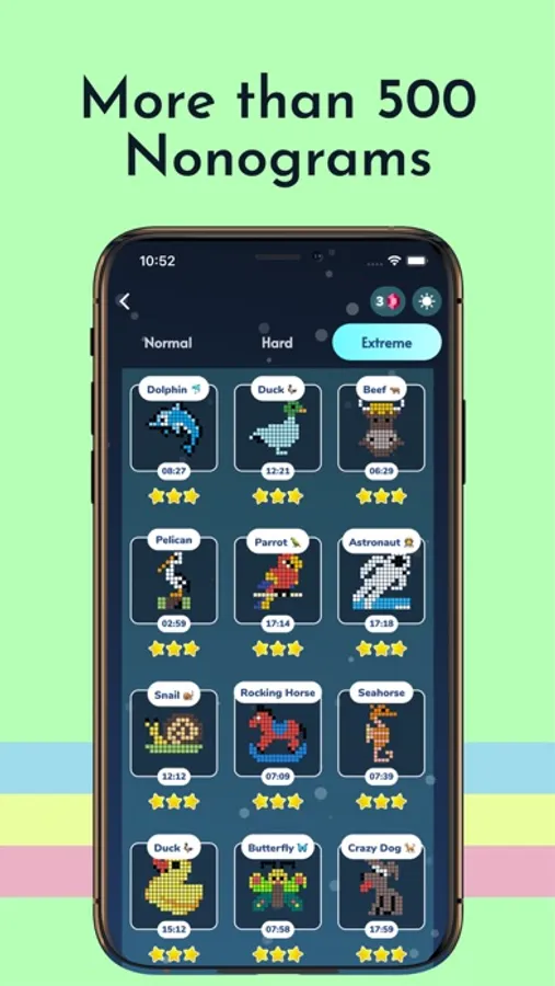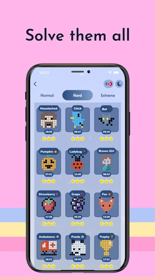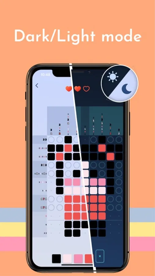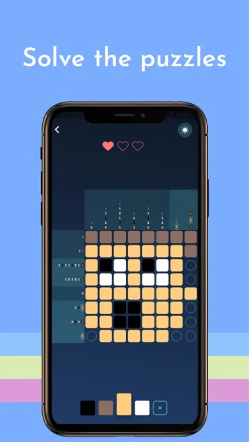 - Use clues and numbers in the pixel logic puzzles to uncover the hidden image.