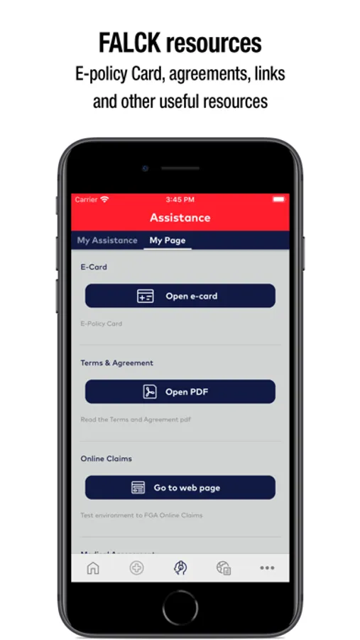 • Falck Resources (click Assistance) such as E-Policy Card, Agreements, Claim links etc