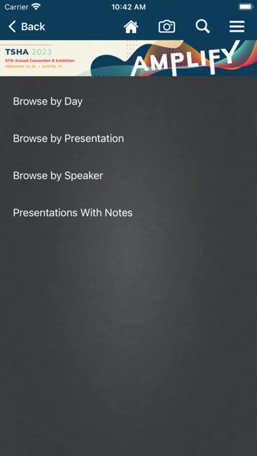 The TSHA Annual Conventions mobile application allows you to browse through presentations, presenter, and exhibitor details, as well as other resources from select Texas Speech Language and Hearing Association annual conventions.