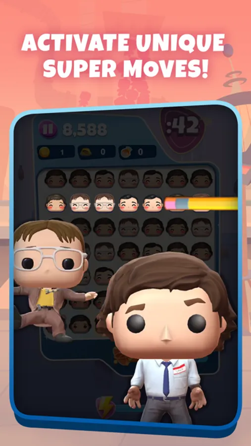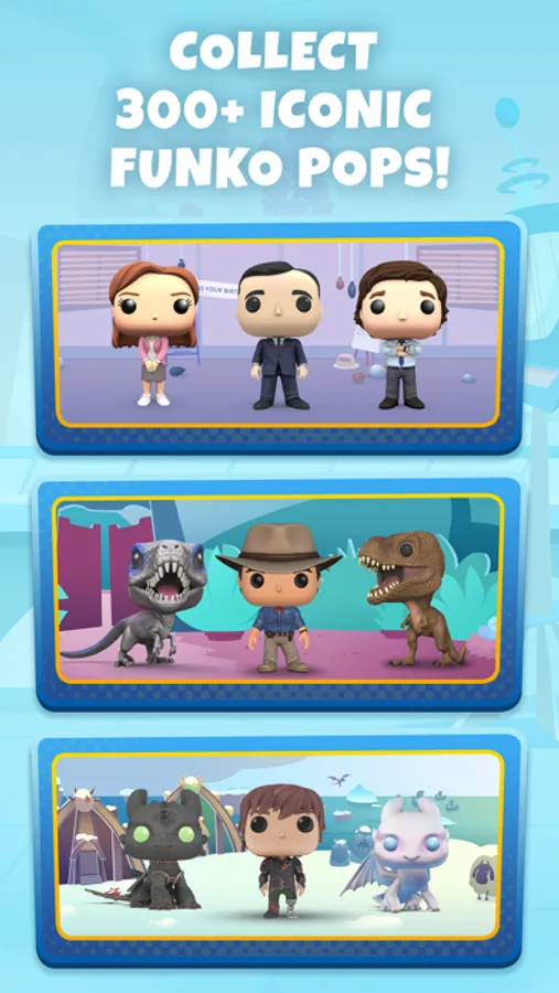 See Funko Pops! come to life with adorable, expressive animations & powerful, upgradeable match-3 Super moves! There are 300+ Funko Pops! to collect and play, featuring popular TV shows like The Office and Doctor Who, blockbuster movies like Jurassic Park and How To Train Your Dragon, and well-known collectible brands like Hello Kitty and Care Bears - with new fandoms added every week! Upgrade & play with classic characters like Shrek, Jaws and the dinosaurs of Jurassic Park.