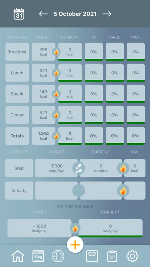 -7000 Kcal/settimana = - 1 kg di perdita permanente. (Puoi perdere 1 kg con -7000 kcal in una settimana.) Con My Calories+, puoi monitorare facilmente e con precisione il tuo apporto calorico e bruciare calorie per raggiungere questo obiettivo.