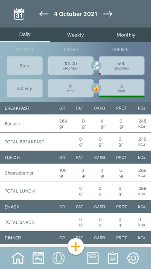 Una delle caratteristiche principali di My Calories+ è un ampio database di alimenti con molti cibi e pasti diversi, oltre a cibi confezionati. Con questa funzione, puoi facilmente registrare i tuoi acquisti di cibo e monitorare i tuoi progressi verso i tuoi obiettivi. L'app offre anche la possibilità di impostare promemoria per pasti e spuntini in modo da poter continuare a raggiungere i tuoi obiettivi durante la giornata. In questo processo, puoi accedere con precisione ai tuoi dati e passi con le nostre bilance portatili Oct e i braccialetti Oct, nonché i nostri dispositivi che funzionano con la tecnologia BLE.