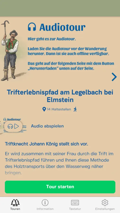 Die App bietet eine Audiotour zur Wanderung Trifterlebnis Legelbachtal, die Sie auch offline durch die Trift am Legelbach führt, die im Biosphärenreservat Pfälzerwald-Nordvogesen liegt. Lassen Sie sich in eine vergangene Zeit entführen, entdecken Sie die gewaltige Bauleistung, die dieses Tal im Pfälzerwald im 19. Jahrhundert formte und lernen Sie so, den Pfälzerwald mit anderen Augen zu sehen.