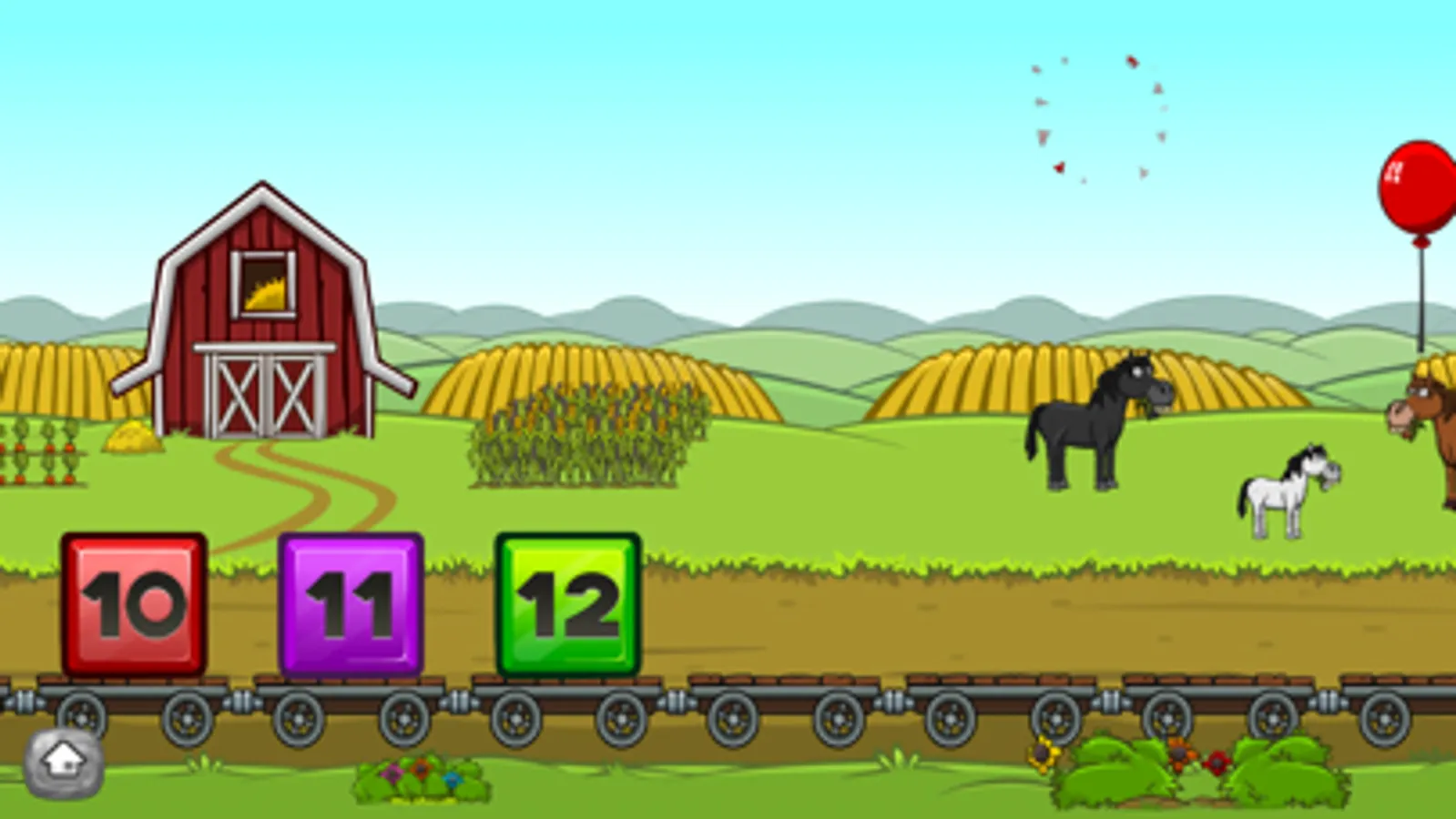 -Interactive farm animals and balloon popping with sound effects!