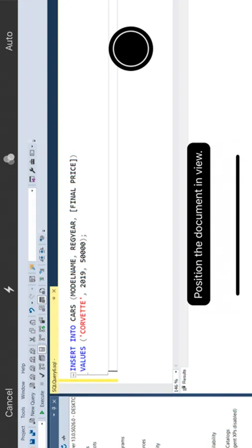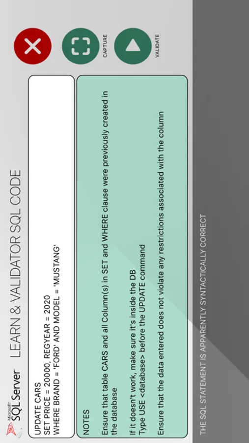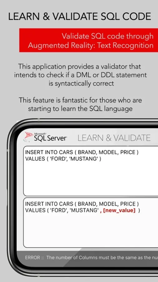 Validate SQL code through Augmented Reality (Text Recognition - possibility to take a picture of the code on your PC)