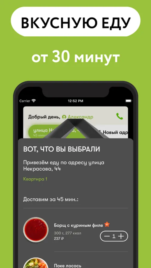 Мы готовим в пределах двух километров от вас, а потом привозим еду всего за 15 минут.