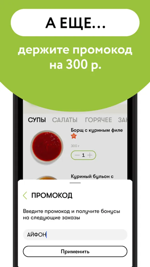 Всё просто: другу 300 бонусов сразу, вам — после того как он потратит 300 рублей. Бонусами можно оплатить до половины заказа.