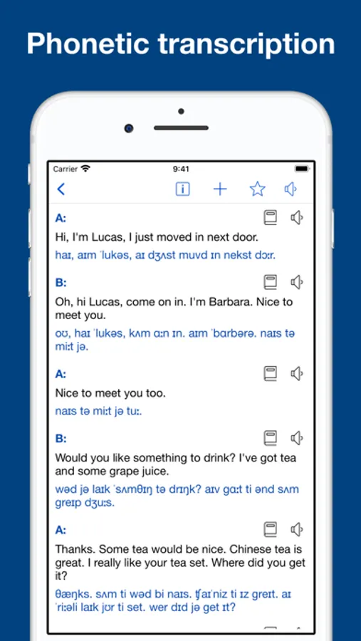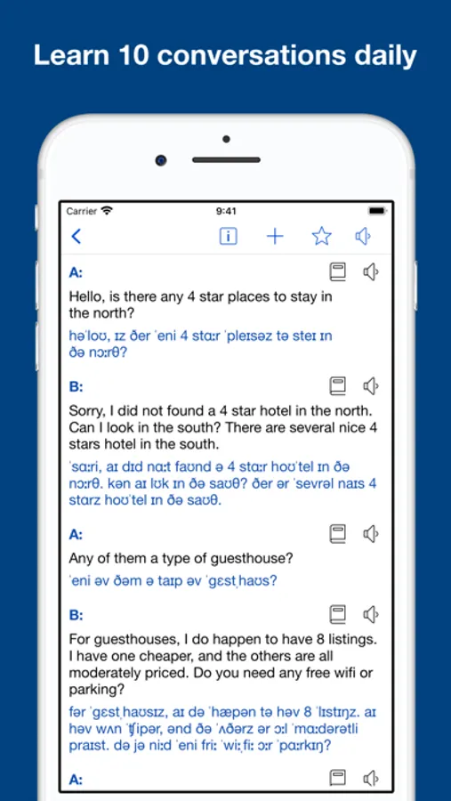 This app provides a comprehensive collections of English conversations on various topics. Each conversation has audio narrated by native speakers and phonetic transcription.