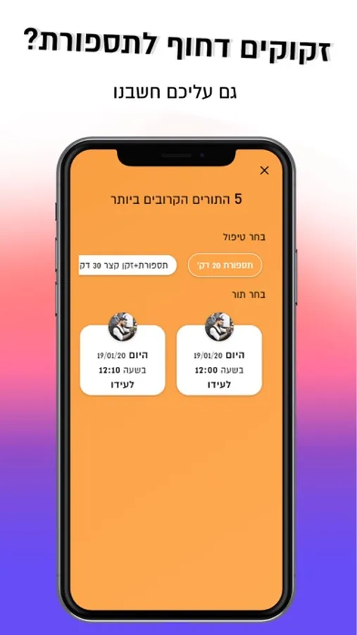 יש לבצע הרשמה קצרה כדי שנכיר אתכם ומשם כל מה שנשאר זה להזמין תור למי שבא לכם ומתי שבא לכם.