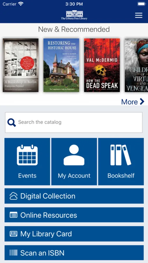 Take The Urbana Free Library with you anywhere you go. Renew items, manage your account, search the catalog, access digital content, and find library events. On the go and see a book you like? Use the app to scan the barcode to see if a copy is available for checkout in the Library.